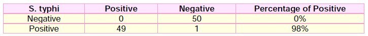 美國CorteZ 傷寒桿菌抗原試驗結果相比,從實驗室提供的糞便樣本患者糞便文化積極和抗體陽性通過維達爾試驗為傷寒桿菌。50個陽性和50陰性標本然后測試與傷寒桿菌快速測試。測試結果顯示98%的整體相關性在積極的樣品和100%的關系