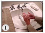 用醫用酒精或家用洗手液將雙手清洗干凈。(圖1)