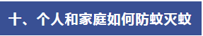 (二)小區(qū)、單位、工地等公共區(qū)域。對室內(nèi)外孳生地進(jìn)行清理,重點(diǎn)關(guān)注綠化帶、停車場、垃圾或雜物暫存點(diǎn)、地下車庫集水井、排水溝、樓梯間、樓房反墚及雨水溝、建筑物凹陷處等,主要采取清理衛(wèi)生死角、翻盆倒罐、沙土填埋、投放滅蚊幼劑等方式。
