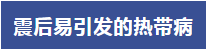 登革熱:震后衛生設施受損,垃圾清理不及時,容易形成小型積水區域,這為傳播登革熱的伊蚊提供了繁殖場所。登革熱是由登革病毒引起、經伊蚊叮咬傳播的蚊媒傳染病。