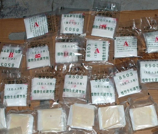 據(jù)嫌犯楊某隆和潘某棉等人交待,沒有添加劑的豆芽往往要10多天才會長成,且細和短,容易出根,味道有些苦,培育成本高,成活率低。兩團伙用石灰粉兌水代替消毒水,添加無根劑、A B粉,用頭孢(抗生素)等添加劑催產(chǎn)。這樣豆芽生產(chǎn)周期只要6天,且顏色白凈,水分豐富,形態(tài)美觀,不易生根,比較壯,沒黑點,能夠保持亮度,比較甜。